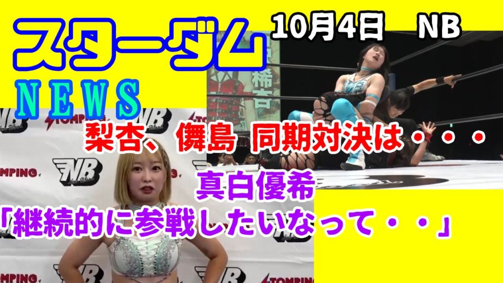 デビューして5年位経っているので、正直、NBに出る選手かどうか微妙な線ですが、バックステージで継続参戦を訴えていたので、ぜひスターダムの本戦にも出て欲しい所ですね。